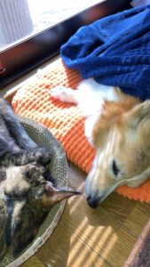 今日も缶詰温めてメーちゃんに食べさせてくれて低脂肪高カロリーの缶詰を頂きました。